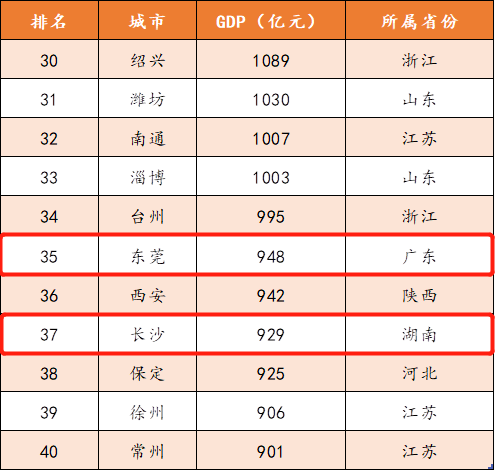 以2003年GDP排名来看,东莞和长沙分别位居第35名、第37名,皆是中游腰部城市的水平。