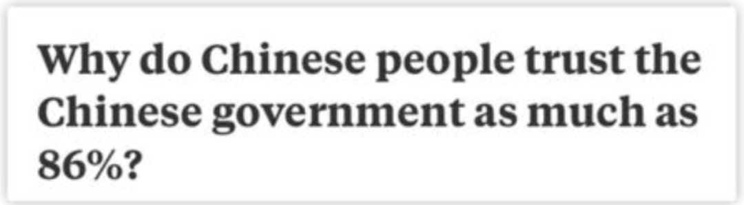 ▲在外网上,有外国友人很疑惑“为什么中国政府的民众支持率这么高”(高达86%,领跑全球),我想这个问题的答案很简单:因为上下同心同德。