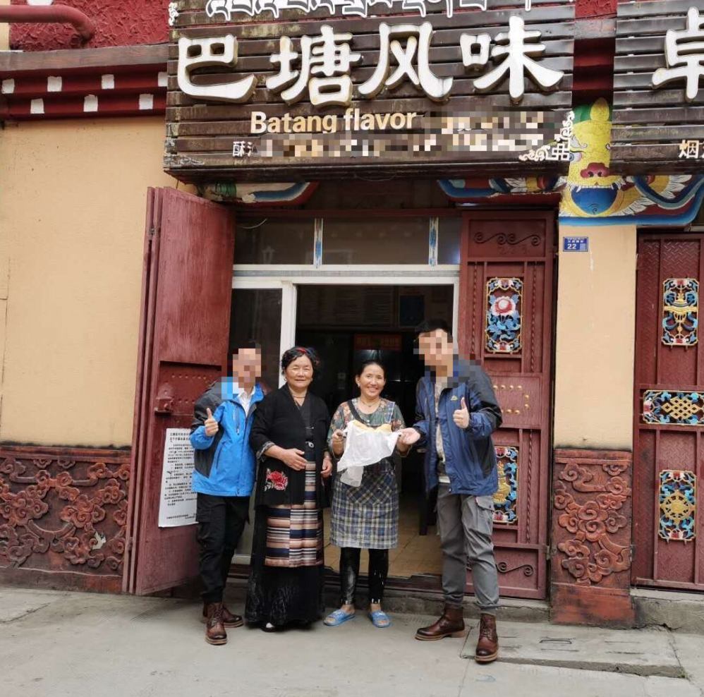 不过这真是我们多虑了,因为后来我们发现,我们点的小壶酥油茶被藏族店家免费升级成了大壶,一旁的藏民特意找来了精致的大腕给我们使用,还不断说着“得给你们体验最好的”之类的话。其中一个叫正光拉姆的藏族教师(巴塘中学教师),更是热情地给我们加餐,甚至当起了向导,介绍着这片土地的文化内在。