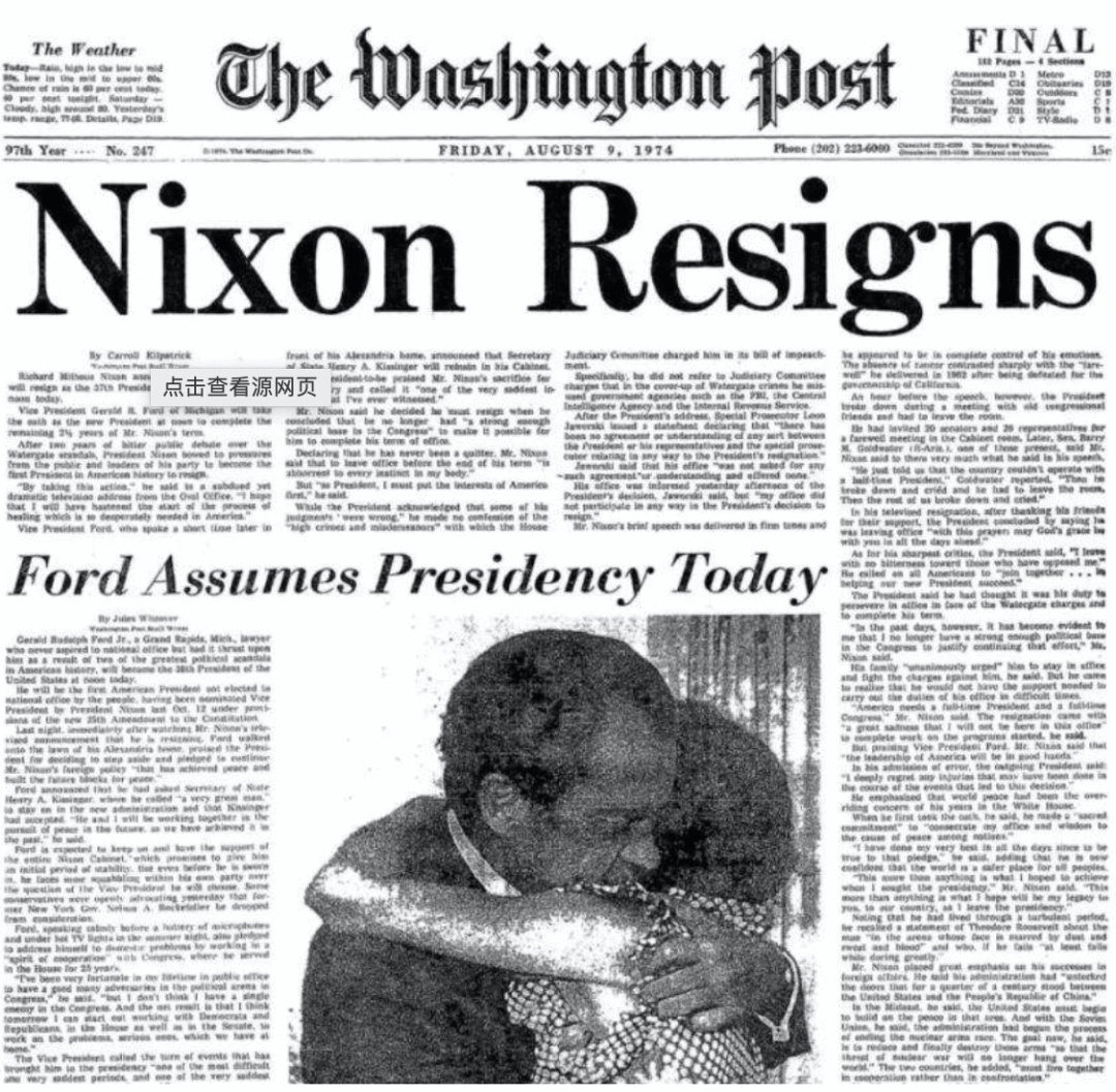 一轮又一轮的猛料被公之于众后,再也扛不住的尼克松只能黯然辞职。