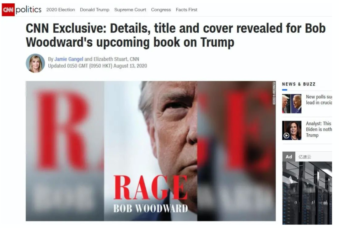 ▲ CNN:鲍勃·伍德沃德即将出版的关于特朗普的新书的细节、书名及封面(图源:环球网)