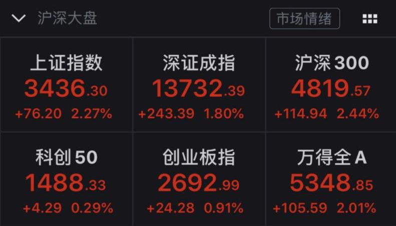 在接受到央妈这样浓烈的“大礼包”之后,我大A股当天就来了个普涨行情。