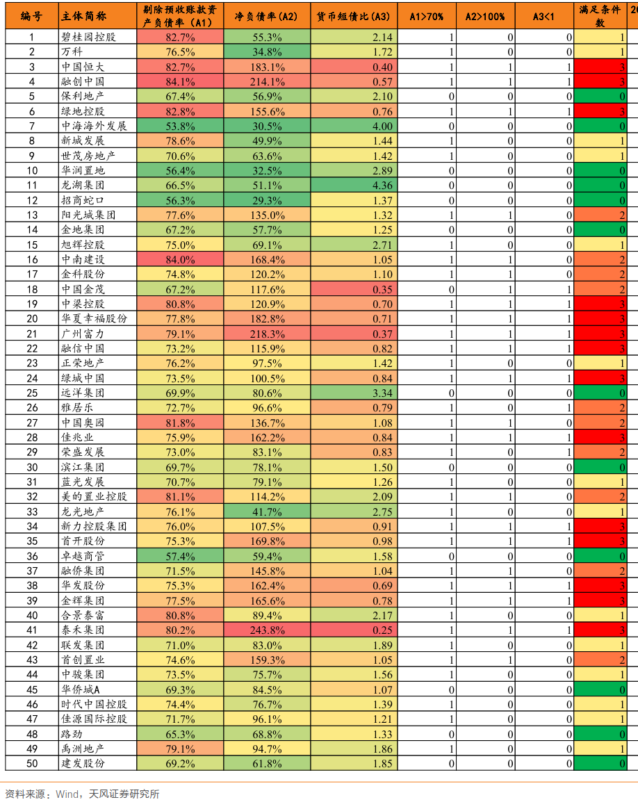 所谓“三道红线”: 1、剔除预收款后的资产负债率大于 70%; 2、净负债率大于 100%; 3、现金短债比小于 1 倍。