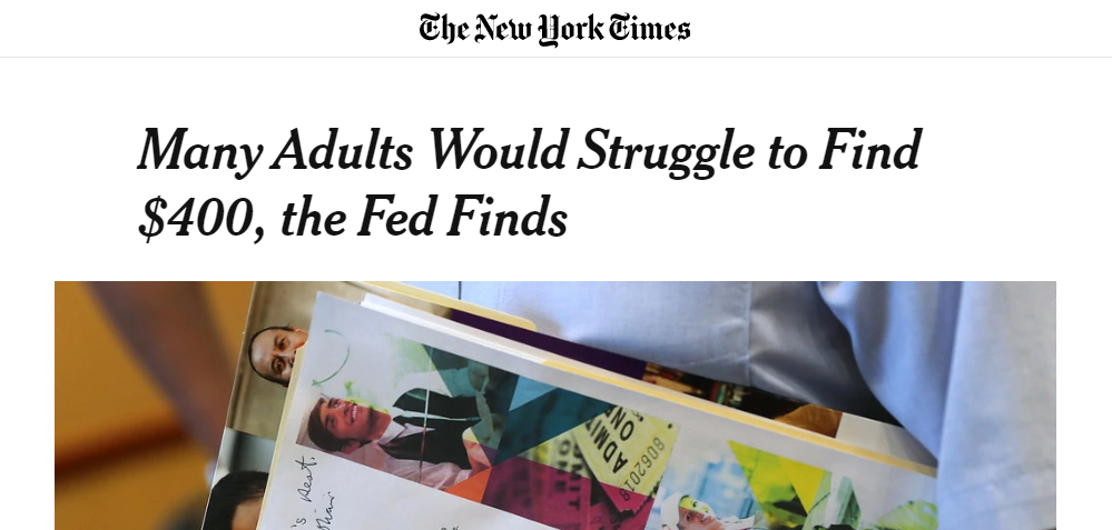 将近40%的美国人,拿不出400美元的应急现金。