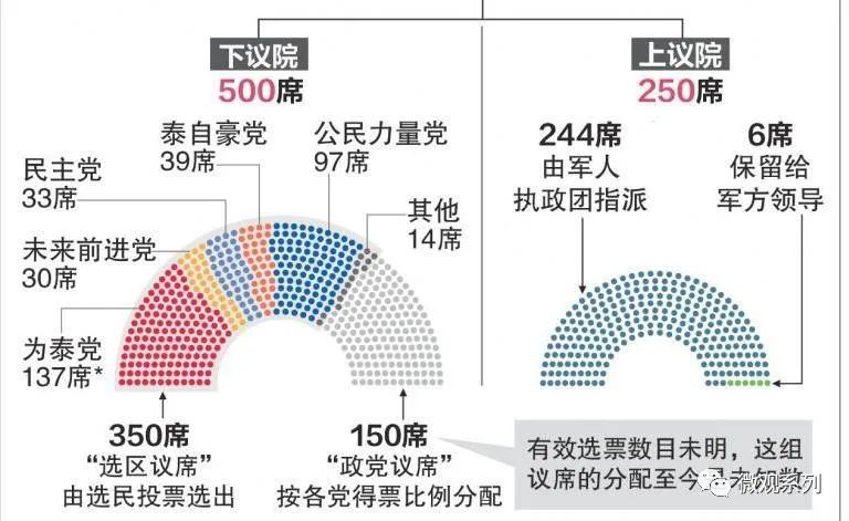 原本泰国众议院议有500个席位,现在加入参议院250席位,也就是总共750席位