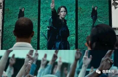 竖起三指,如电影饥饿游戏中一样,呼吁民众站出来推翻邪恶统治。