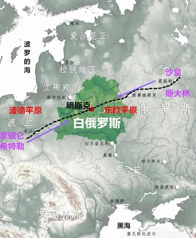 拿破仑与希特勒向东进攻,出波德平原之后,首先拿下明斯克与斯摩棱斯克(俄罗斯),就可以直接威胁莫斯科。
