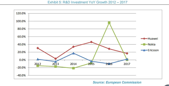 图 华为5G研发投入超过爱立信、诺基亚总和