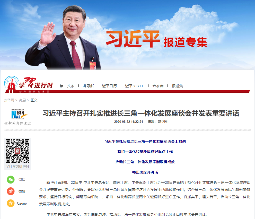 由此可见,在中央的判断里,中国城市群虽然比较多,但真正走上高质量发展轨道的,只有长三角和珠三角。珠三角范围较小,即便扩展为粤港澳大湾区也只有11个城市,面积5.6万平方公里。而长三角包括上海、江苏、浙江和安徽“三省一市”的全部地区,35.8万平方公里;长三角的核心地区包括27个地市、22.5万平方公里。所以长三角一体化对中国经济的拉动作用更大。而这次座谈会,其实就是研究如何推动长三角一体化发展的。目前国家给长三角的定位是:全国发展强劲活跃增长极、高质量发展样板区、率先基本实现现代化引领区、区域一体化发展示范区、改革开放新高地。1、不仅要提供优质产品,更要提供高水平科技供给,支撑全国高质量发展。