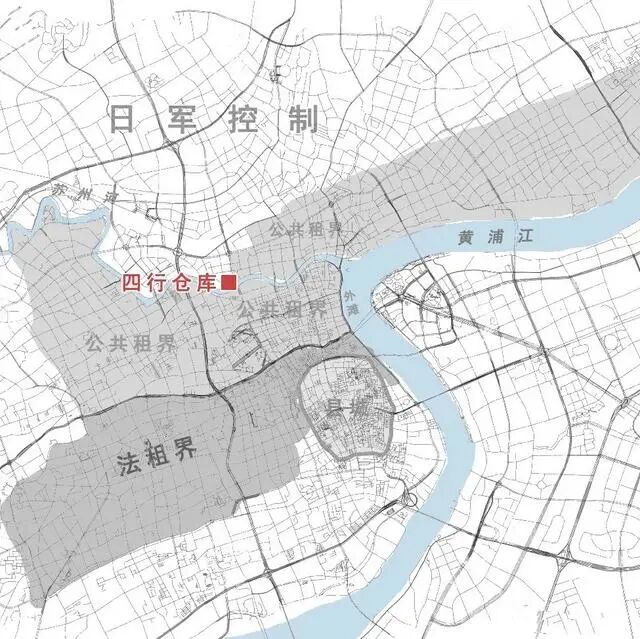 四行仓库位于苏州河北岸、西藏路桥西北角,墙壁混凝土很厚,当时的日本坦克无法将其打穿。