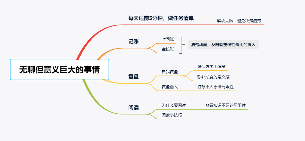 所以坚持复盘,能让你看到自己每天微小的进步,填补缺失的意义感,让你一直做下去。
