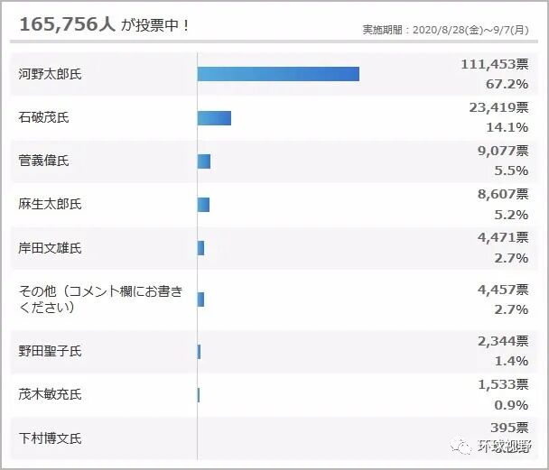 ▲雅虎民调:新任自民党党首 河野遥遥领先