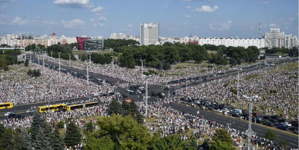 与26年前是一样的,同样是80%的得票率,然而大选后却出现了极为诡异的一幕,10万多白俄罗斯人走上街头抗议。
