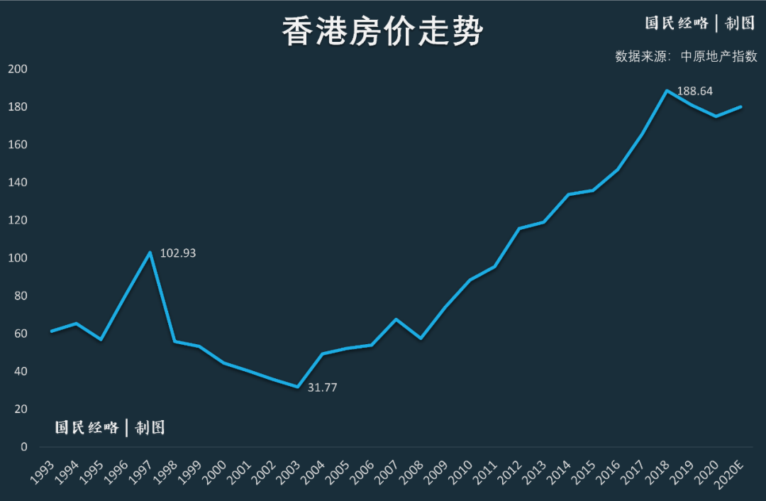 这些发明,奠定了香港房价一飞冲天的历史。即便过去几十年,香港多次遭遇危机冲击,房价一度腰斩,但借助这一模式,楼市总能从最低谷一跃而起,不断创出新高。
