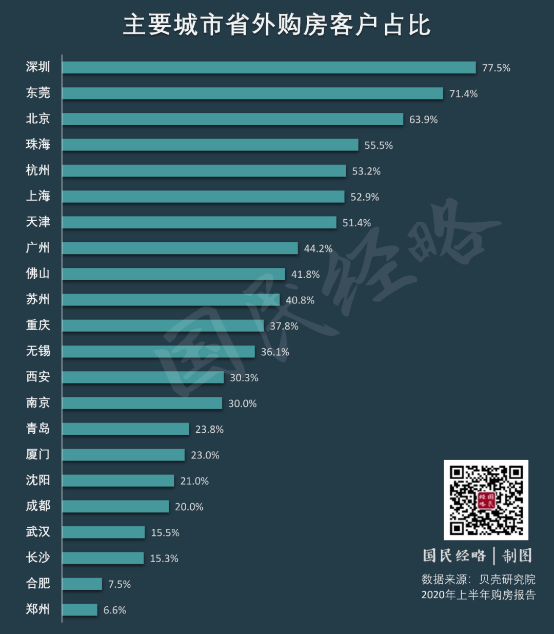 一个城市外来购房者的多少,既是人口吸引力的参考指标之一,也是楼市热度能否持续的关键因素之一。