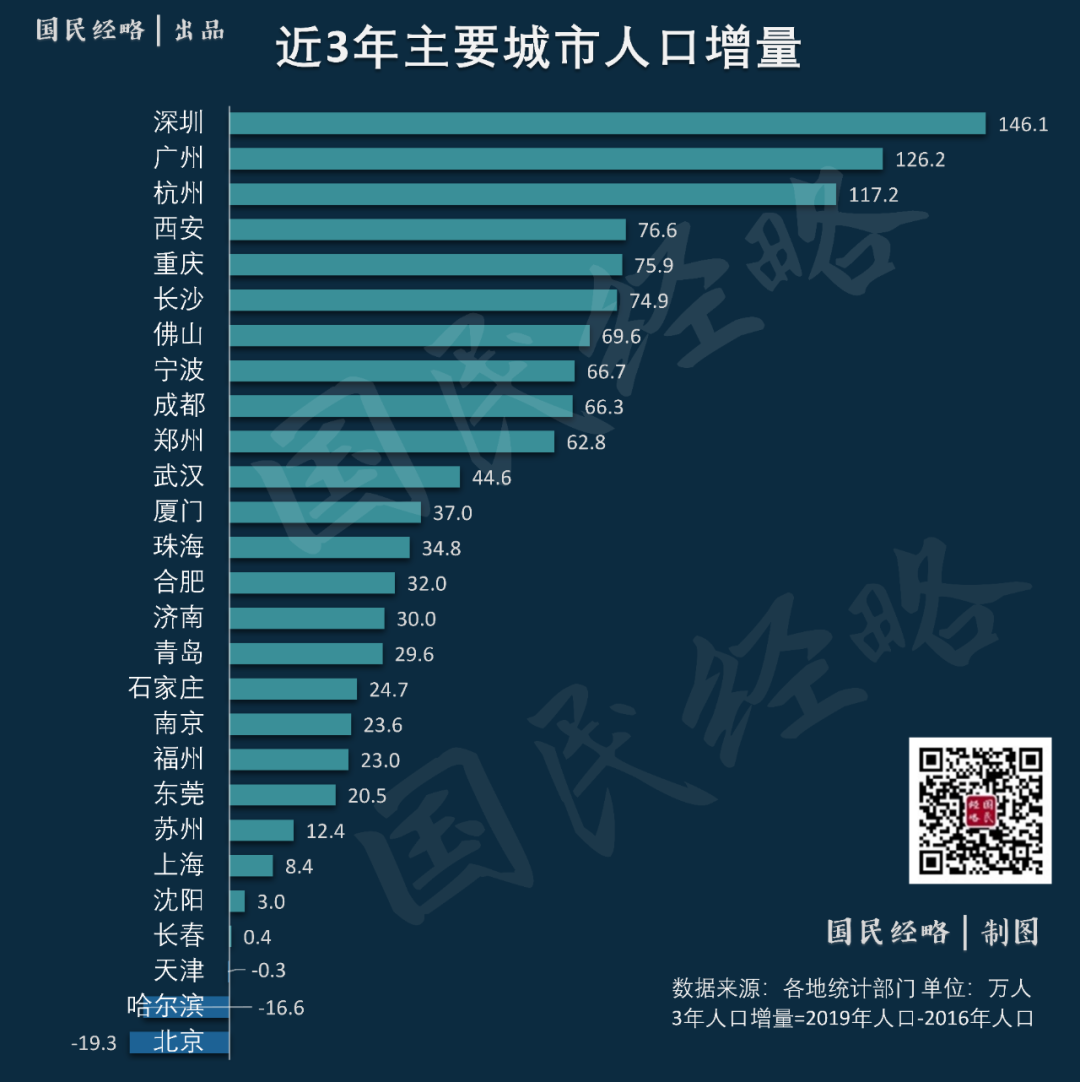 新增人口分别达到146.1万、117.2万、20.5万、34.8万,这其中除了自然增长人口(出生人口-死亡人口),更多的都是外来流入人口。