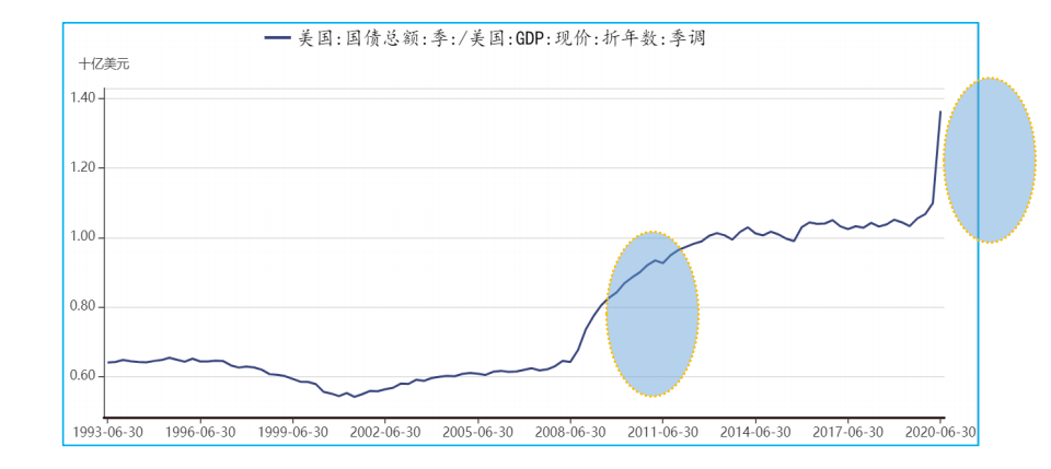 从这个角度上来讲,2020年第二季度巴菲特增持黄金,估计也是看中黄金再创历史新高只是时间问题。如果美国2020年新一轮财政刺激方案达成,财政赤字占GDP比例将进一步上升,黄金将可能再创新高。