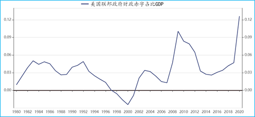 同时,按照截至2020年7月份,美国财政赤字2.45万亿美元(约合16.9万亿元人民币)估算,当前美国联邦政府财政赤字占比2020年折年GDP已经超12.6%,创历史新高。
