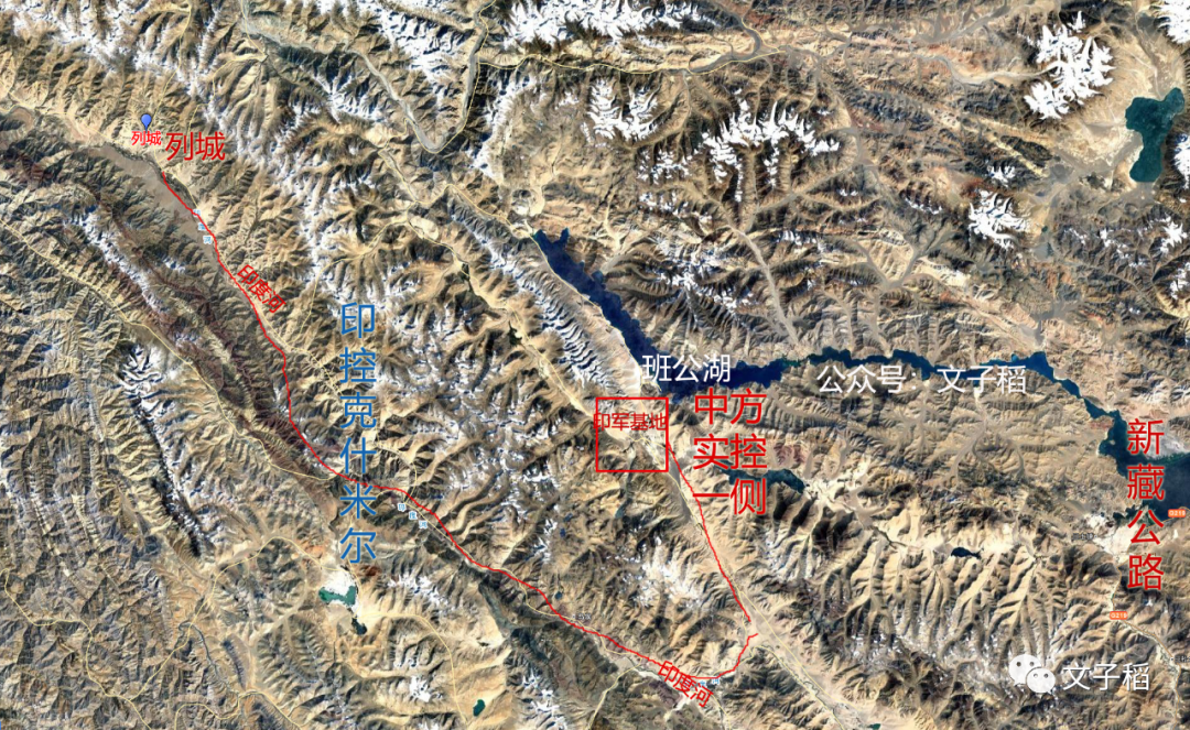 在距离印军这次越线的班公湖以南地区、热钦山口大概几十公里处(上图红色方框)就是印军集结的军事基地。
