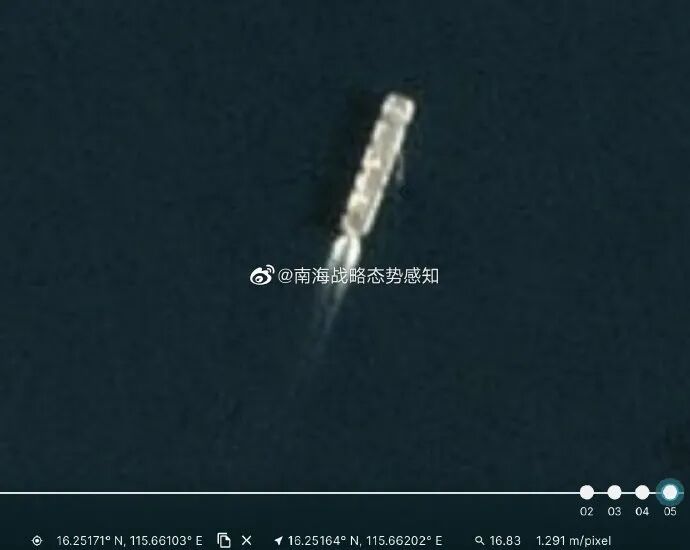 据环球网报道,“南海战略态势感知”平台7日在微博上发布消息称,9月5日,卫星图像在西沙群岛以东发现日本海上自卫队“日向”级直升机驱逐舰(Hyūga-class helicopter destroyer),航向东北。