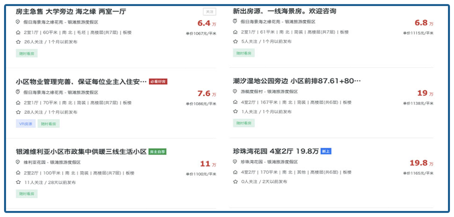 与价格相对应,银滩的房地产也是两个景象,二手房一片惨淡,挂好几个月也没人问,新房市场红火连天,特别是从贝壳找房上来看的话,感受到的完全是一片火爆景象。