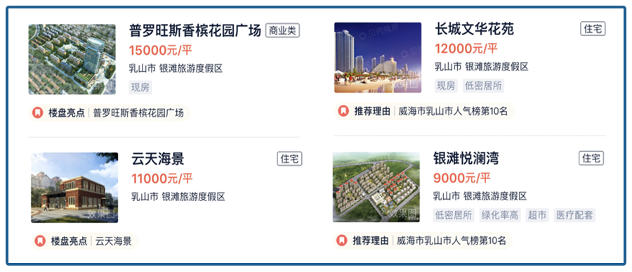 这里的关注度比乳山市区的关注度还要高,如果从二手房网站上搜一下,乳山市区只有397套在售房源,而银滩有3267套在售,是市区的8倍多。