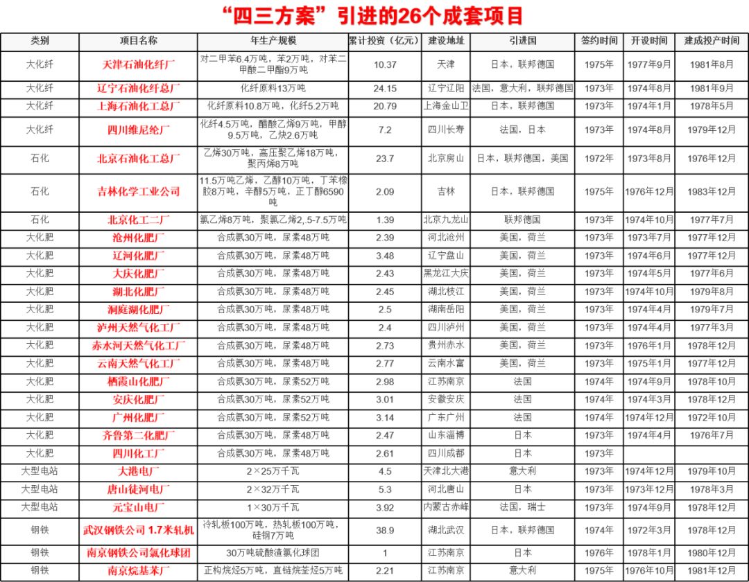 随着美国在朝鲜战争和越南战争中的失败,苏联力量不断强大,为了防止苏联称霸全球,主席决定战略转向美国,阻止苏联称霸!中国和美国合作的前提是:美国也必须支付中国一套完整的工业体系,这就是著名的“43方案”!所谓的“43方案”就是指:中华人民共和国1970年代初从美国、联邦德国、法国、日本、荷兰、瑞士、意大利等西方国家大规模引进成套技术设备的计划,总价值在43亿美元(保守估计相当于现在的4300亿美元)。这是中国继1950年引进苏联援助的“156项工程”之后,第二次大规模的技术引进。中国利用“四三方案”引进的设备,结合国产设备配套,兴建了26个大型工业项目和43套机械化综合采煤机组,以及当时具有世界先进水平的透平压缩机、燃气轮机、工业汽轮机等单个项目。