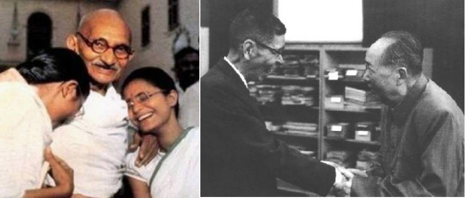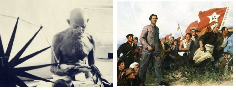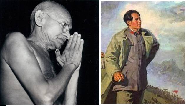 前一个他叫甘地,他的国家叫印度,他影响这个国家方方面面;后一个他叫毛泽东,他的国家叫中国,他也影响了这个国家的方方面面;