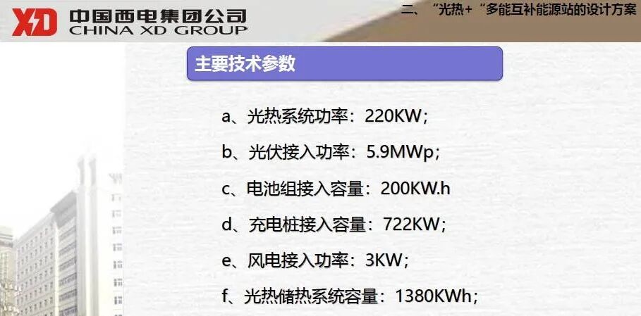 以上是中国西电集团设计的一个光伏、光热、电池储能、充电、风电等多能互补的方案各部分容量案例。