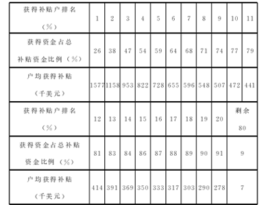 由上表可见,排名前3%的农户几乎得到全部补贴金额的50%,全国80%的农户一共分得全部补贴的9%。1995-2014年,美国大部分农场平均每户只获得了7000美元的农业补贴金。
