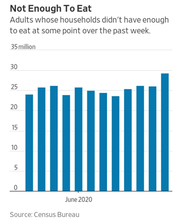 面临饥饿问题的人群越来越庞大。《华尔街日报》称,截至7月底,美国已经有12.1%的成年人出现了“近一周内面临食物匮乏”的情况。