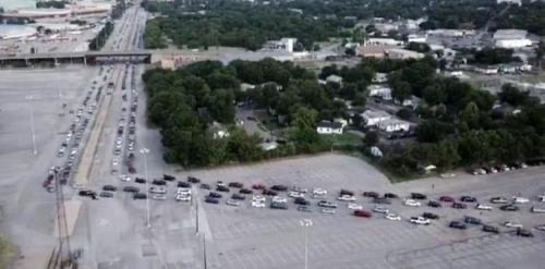 排长队等待领取救济食物的车辆。图片来源:英国《每日邮报》