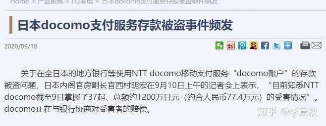 从去年开始,日本不少企业开始学着搞移动支付,相当多的公司都不了了之,甚至连docomo这种公司都犯了很多愚蠢的错误,《日本经济新闻》报道,docomo的移动服务存款被盗问题频发,导致docomo不得不停止了新用户注册。