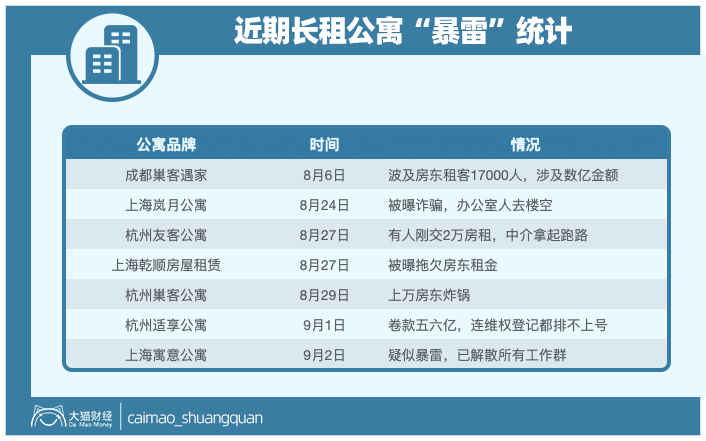 有人统计了下,近一个月内全国有超15家房屋租赁公司的创始人或负责人失联,波及四川、浙江、华南、华东等省份和地区,疫情才过去多久,这就要集中爆发了么?