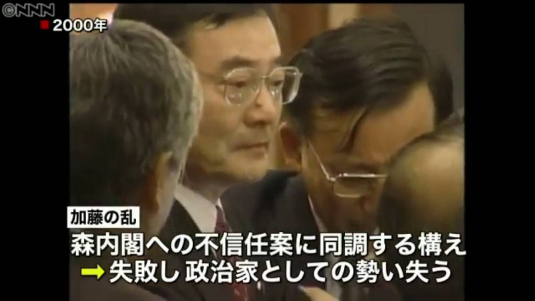 2000年时,自民党爆发内讧,史称“加藤之乱”。自民党“加藤派”代表加藤紘一为首的部分议员发起了对当时森喜朗政府的不信任案,岌岌可危的森喜朗内阁濒临下台。菅义伟也加入了加藤紘一的队伍,后来加藤计划失败。