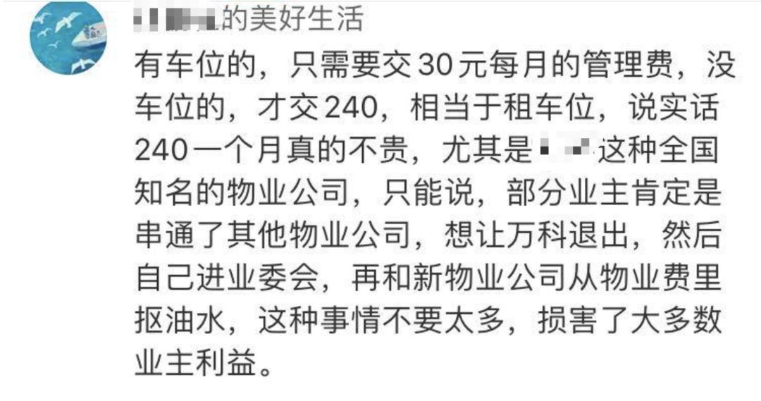 不好意思,茫茫众生无对错,唯理尔。我非常喜欢莎士比亚的一句话:人们可支配自己的命运,若我们受制于人,那错不在命运,而在我们自己。我帮你还原一下事情经过,你就明白这句话的含义到底是什么。其实宁波这个小区是刚交付的新盘,交付时间是2019年10月25日。随着业主入住率提升,停车需求越来越高,物业决定启动地下车库,那么就要面临收钱的问题。其实费用之前当地政府已经给了备案价,360元/车位/月(其中330元/月车位租赁费、30元/月车位管理费)。但物业考虑到市场行情,为了平衡和周边小区的车位价格,最终把价格定到了240元/车位/月。并在小区物业服务中心墙上进行多次价格公示。去年交付时公示了一次,今年8月中旬又公示了一次。期间一直静悄悄,9月1日,陆续有48人办了签约手续。然而戏剧的一幕出现了,部分业主不满此价格,多次要求物业把价格降低至150-180元。但物业认为备案价是360元,现在已经为大家谋福祉降低至240元了,没法再便宜了。闹事业主不满,多次交涉未果,干脆从网上印了一幅锦旗,上面赫然大字写着:“干啥啥不行,收钱第一名”,送给了物业。并拍照登网,以此胁迫物业继续降价。最终的结局大家都知道了,物业直接宣布退出,爷不干了。02
