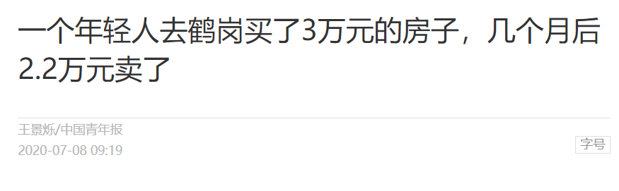 近日,一篇《一个年轻人去鹤岗买了3万元房子,几个月后2.2万元卖了》的文章刷屏,黑龙江鹤岗再次上了热搜。