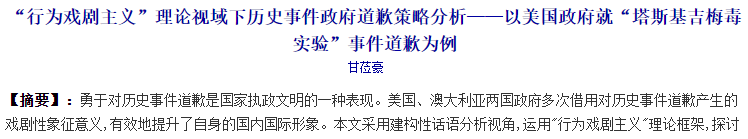 1997年,美国政府就塔斯基吉梅毒实验道歉,有效的提升了自身的国际国内形象,至少在中国,有人把这事儿写成了资本主义政府公关的经典案例