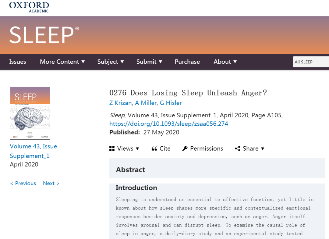研究人员追踪了202名大学生一个月的睡眠,并分析了他们的每日日记,日记中记录了睡眠、每日应激(压力)源和愤怒情绪。结果显示,与平时相比,睡眠不足的人在几天内表现出更多的愤怒情绪。