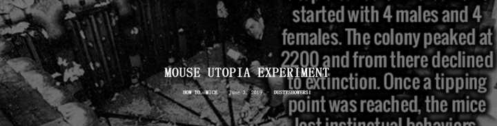 1968年7月9日,马里兰郊区的一幢研究所里,一个生态学动物行为学家约翰·卡尔霍恩(John B Calhoun)进行了一个不可思议的老鼠乌托邦实验,从这个实验我们可以一窥人类的终极走向。