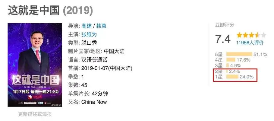 ▲ 《这就是中国》在豆瓣上口碑分化严重,大量的恨国党恶意刷1星拉低评分