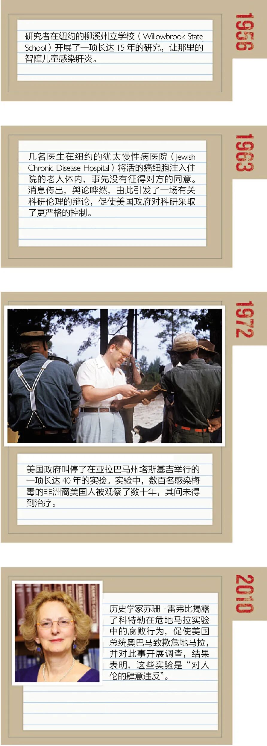 不过她也表示,在临床实验中,并非总有一条清晰的伦理底线。“当你在特定的案例中细究底线的意义,分歧就出现了”。对危地马拉实验而言,这或许才是最令人担忧的教训。在任何一个时代,都可能有许多研究者(甚至是大多数)同意,某一个做法或某一条规则是正当的、必要的;但对于后代来说,前人的野蛮又是那样显而易见。