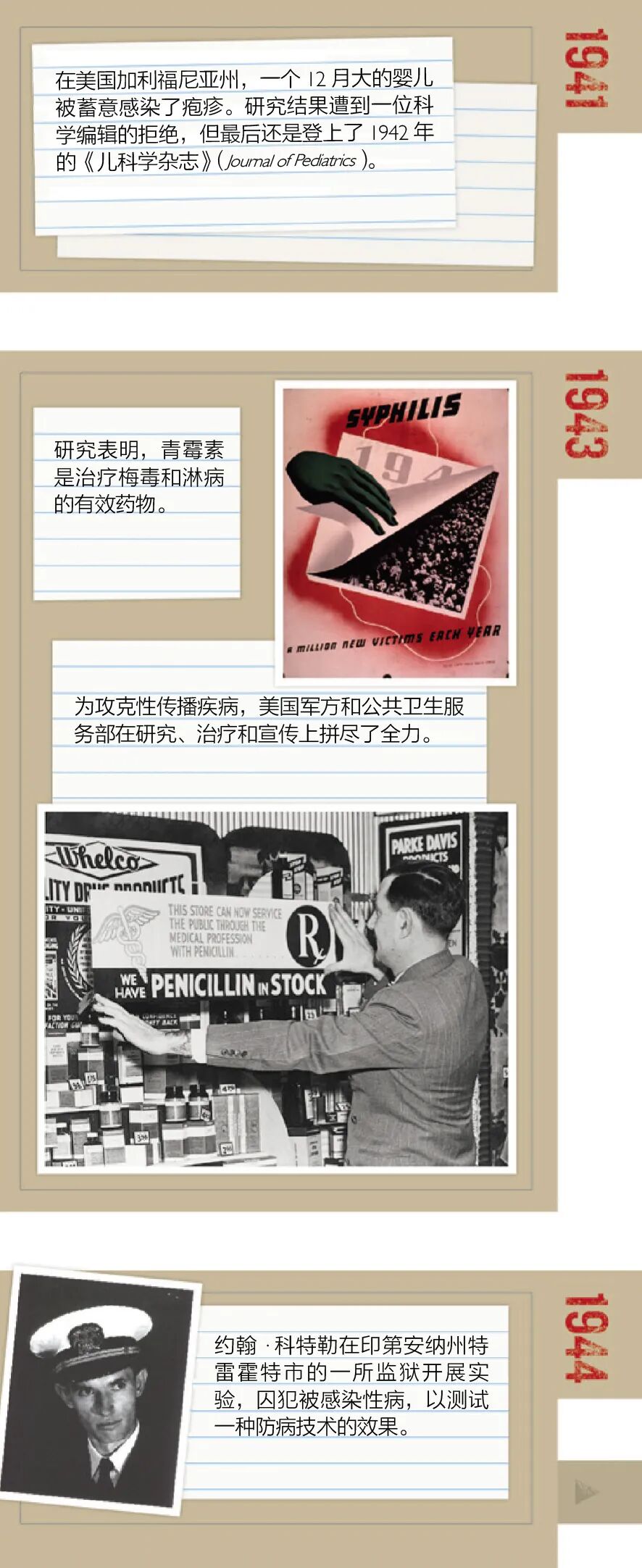 在20世纪的前几十年,美国的卫生官员都忙着和性传播疾病作战。1943年,时任美国国家研究委员会性病分会主席的约瑟夫·摩尔(Joseph Moore)估计,美国军队中每年新增的淋病感染人数将达到35万。为了解决这个问题,美国政府在研究、治疗和宣传上花了很大力气。