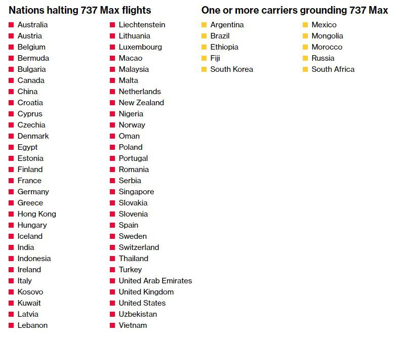 空难发生后,为了安全起见,大部分国家都暂停了737 MAX的航班。