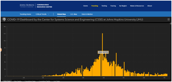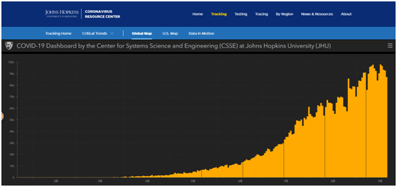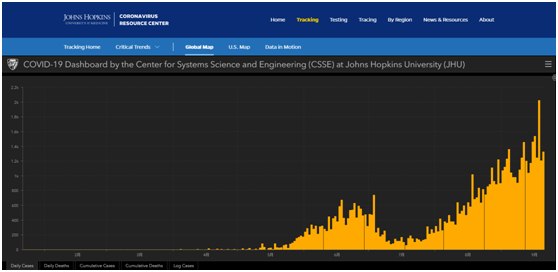 巴基斯坦疫情柱状图(来源:约翰·霍普金斯大学网站)