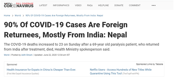 而作为“大国”印度周边的邻国,其实会更担心这样的新闻出现。早在6月尼泊尔疫情出现上升的那个阶段,尼泊尔的卫生部门就发现,90%的确诊病例是从印度返回尼泊尔的。