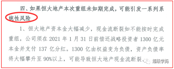 就这样,经过三轮融资,恒大累计让出了36.54%的股权,换来了1300亿元的资本。由于对赌条款,这其实也是高风险债务。一旦无法上市,退回本金不说,还有137亿的“分红”。