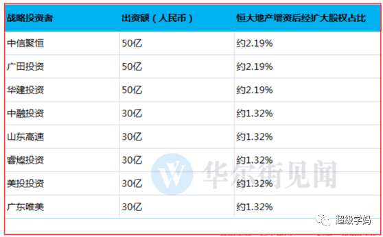 为了实现这次重组,恒大开始筹资。2016年,恒大地产与8家战略投资者签订协议,通过出售恒大地产经扩大后股权的13.16%,筹资300亿元。