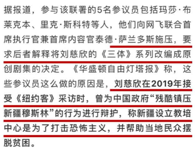 之前美国网飞公司不是要拍《三体》吗?结果在9月23日,美国政客不干了。