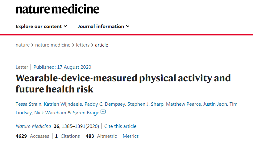 近日,国际顶级权威期刊《自然·医学》发表了剑桥大学Søren Brage团队的最新研究成果[1]。